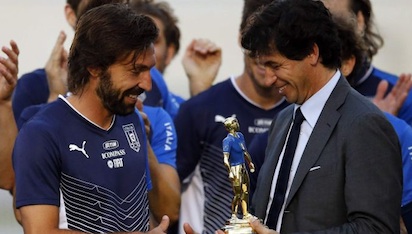 Футболистите от националния отбор на Италия засвидетелтваха уважението си към ветерана Андреа Пирло, който изигра своя мач номер 100 за "Скаудра адзура". В юбилейния си двубой 34-годишният халф вкара бриялнтен гол от пряк свободен удар и помогна за победата над Мексико (2:1) на старта на турнира за Купата на конфедерациите.