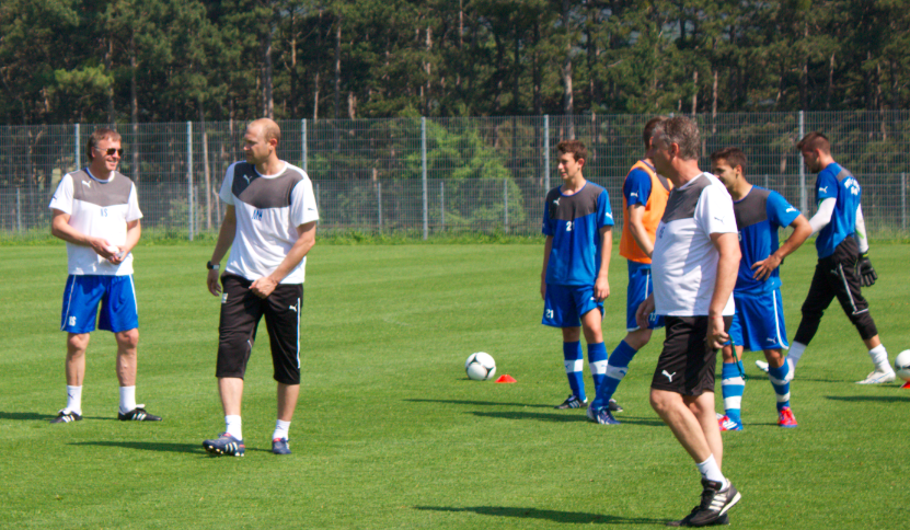 Всичките 29 играчи, плюс треньорския състав бе събран в кръг на центъра на помощното игрище, където столичани се готвят в Австрия.