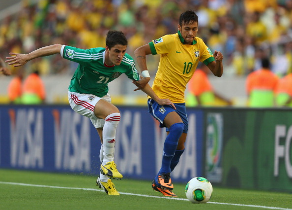 арят на Мексико се отличи с прекрасна намеса, за да опази вратата си. Първата възможност за "ацтеките" дойде в 16-ата минута, когато Миер открадна топката от краката на Марсело в наказателното поле и отправи опасен удар, който премина до вратата. Малко по-късно обаче в 23-ата минута Неймар се пребори за една топка пред наказателното поле и отправи удар, който премина над вратата.