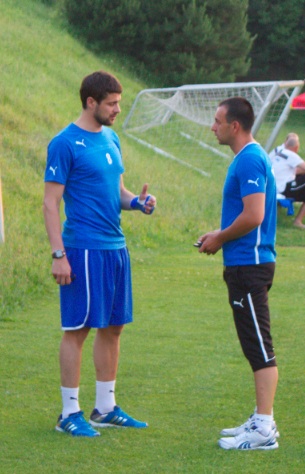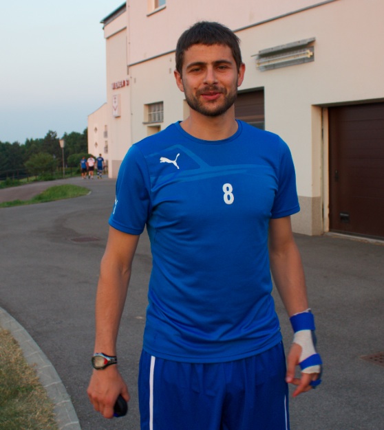 Бившият голмайстор на “А” група от сезон 2006/2007 година тренира индивидуално, като въртя обиколки, докато Николай Митов ръководеше тактическото занимание на футболния терен.
