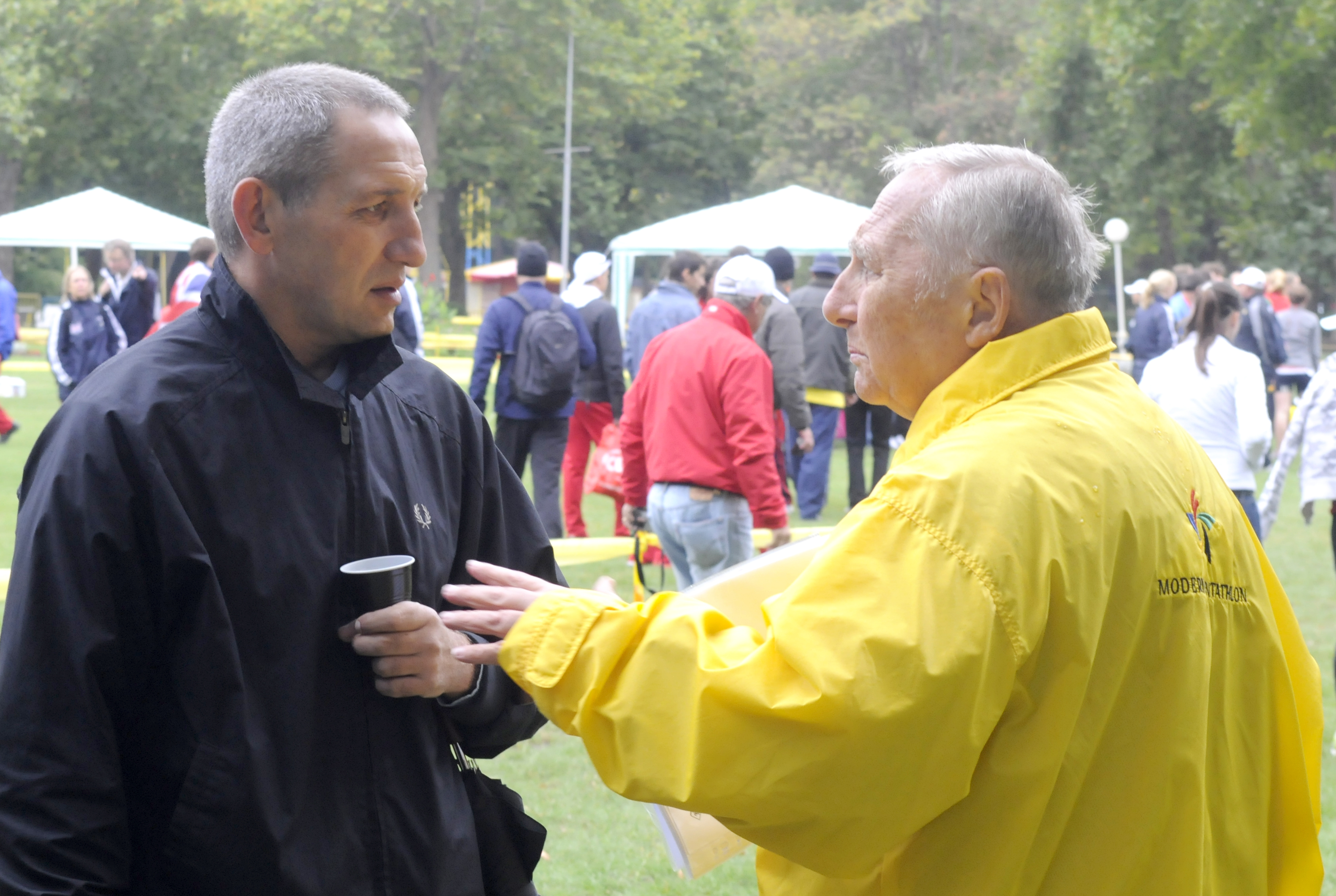Андрей Кузманов (вляво) председател на Българска федерация модерен петобой "Получаваме отлични отзиви за организацията и провеждането на европейското първенство в София. Международно състезание от такъв ранг повдига имиджа и престижа на държавата, рекламира България, нейния спорт”, коментира пред Първи български плувен сайт Андрей Кузманов – председател на Българска федерация модерен петобой (БФМП), вицепрезидент на Европейската, шеф на Балканската и член на финансовата комисия към международната централа (UIPM).