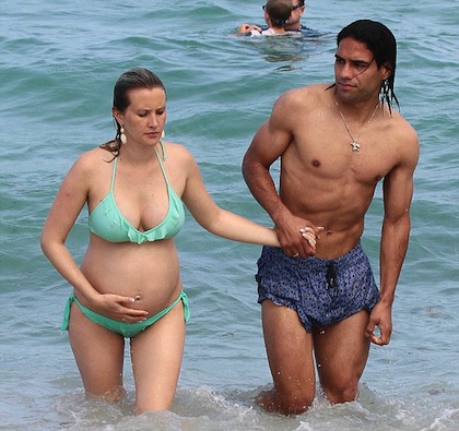 Новото звездно попълнение на Монако Радамел Фалкао се е отдал на почивка преди началото на новия сезон. Голмайсторът прекарва своята ваканция в Маями заедно с бременната си съпруга Лорелай Тарон. Двамата изглеждаха истински влюбени, докато се гушкаха и целуваха страстно във водата, а след това и на плажа.