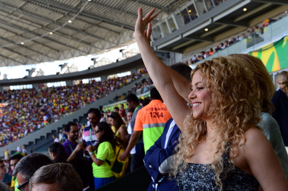 На трибуните на стадиона във Форталеза беше и колумбийската попдива Шакира, която подкрепяше любимия си Жерар Пике от състава на Испания.