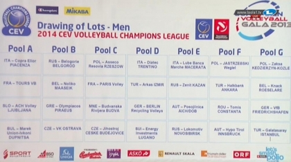 Волейболният шампион на България Марек Юнион Ивкони попадна в предварителна Група "А" на Шампионската лига заедно с италианския Копра Елиор (Пиаченца), френския Тур и словенския АХ Волей (Любляна). Това стана ясно след тегления преди малко жребий по време на традиционна гала вечер на Европейската волейболна конфедерация (CEV) в австрийската столица Виена.