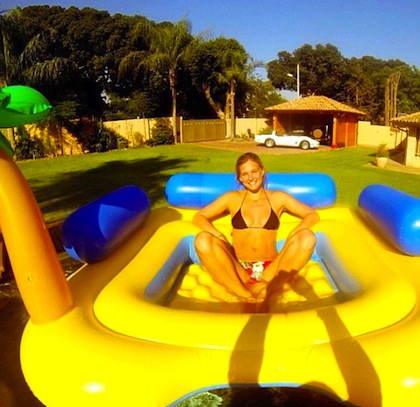 Супермоделът Бар Рафаели обича да споделя свои снимки с феновете си в социалната мрежа. В новата поредица фотоси израелската красавица, която имаше забежка с футболиста на Барселона Дани Алвеш, се разхлажда в детски надуваем басейн и си почива на улична пейка. Освен това, всичките 480 хиляди почитатели на 28-годишната Бар видяха как тя седи чисто гола на задната седалка на кола, като прикрива прелестите си само с пликове за обувки "Christian Louboutin".