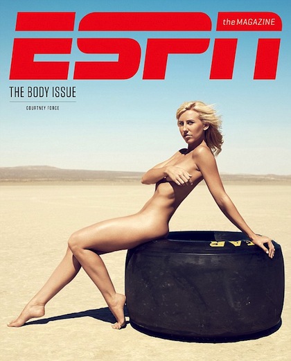 Всички очакват с нетърпение на 12 юли да излезе за пета поредна година "голият" брой на списание ESPN. "The Body Issue" ще покаже голите тела на 21 спортисти, а изданието ще има цели 8 различни корици. На една от тях е автомобилната състезателка Кортни Форс. Сред другите снимки, които ESPN пусна предварително в интернет пространството, са тези на баскетболиста Кенет Фарийд, състезателката в ММА Мийша Тейт, питчърът на Ню Йорк Метс Мат Харви и сноубордистката Елена Хайт.
