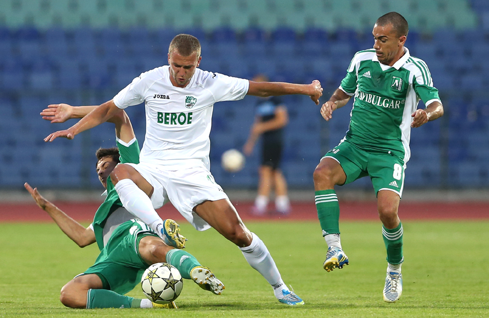 В 27-ата минута късметът се усмихна на Берое. Давид Каядо центрира отдясно, Христов се извиси и с засече топката с глава, тя рикошира в гърба на защитник в зелено и се оплете в мрежата за 0:1.