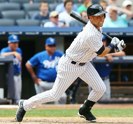 Дерек Джитър батира 1 от 4 с RBI и отбеляза точка в първия си мач в Мейджър лийг бейзбол (MLB) от миналия октомври. Капитанът на Ню Йорк Янкис се завърна при домакинската победа с 8:4 срещу Канзас Сити Роялс и бе посрещнат на крака от 40 381 запалянковци на ст. "Янки" в Бронкс.