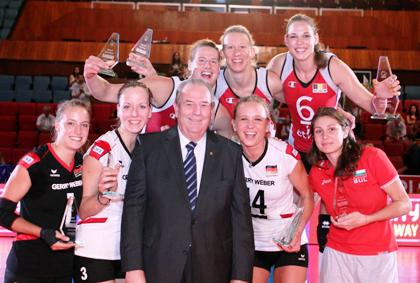 За най-полезен играч (MVP) на турнира пък бе обявена капитанката на Белгия Шарлот Лейс, въпреки че белгийките загубиха финала от Германия с 2:3 гейма. Белгия взе още две индивидуални награди - Фрея Аелбрехт за най-добра блокировачка и Фрауке Дирикс за най-добра разпределителка. Победителките от Германия прибраха 4 индивидуални приза - Маргарета Кожух за най-добра нападателка и най-добра реализаторка, Денис Ханке за най-добра изпълнителка на сервис и Ленка Дюр за най-добро либеро.