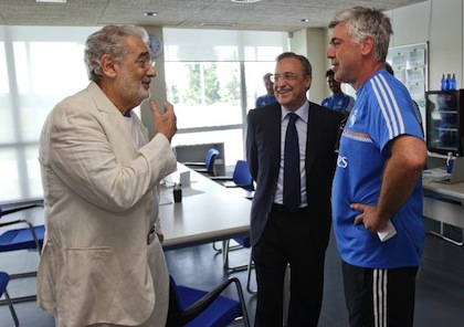 На "Валдебебас" Доминго бе посрещнат от президента на Реал Флорентино Перес. След това Пласидо Доминго поздрави старши-треньора на отбора Карло Анчелоти, а също така и всички футболисти, като естествено обърна най-голямо внимание на суперзвездата Кристиано Роналдо.