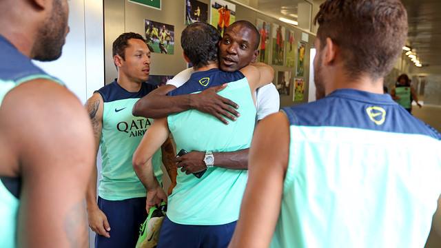 Запитан за избора на Тиаго Алкантара да отиде в Байерн (Мюнхен), Пуйол отговори: "Трябва да уважаваме решението му". Относно интереса на Манчестър Юнайтед към Сеск Фабрегас заяви: "Не мисля, че ще напусне". На днешното сутрешно занимание се появи бившият играч на Барса Ерик Абидал, който от новия сезон ще играе за Монако.