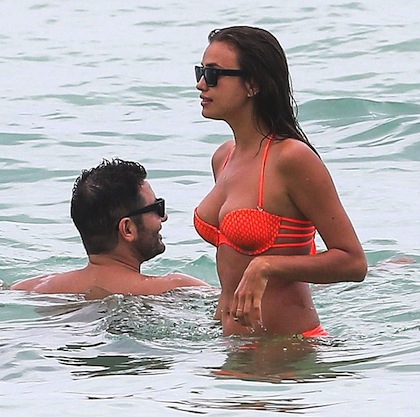 Руският топмодел Ирина Шейк вдигна още повече градусите в Маями. Гаджето на звездата на Реал Мадрид Кристиано Роналдо прекара цял ден на плажа, но компания й правеше не футболистът, а нейният агент и приятел Али Кавуси. 27-годишната Ирина направи няколко демонстративни разходки до водата и изглеждаше все едно е на модния подиум. Тя носеше ярко оранжев бански от две части и тъмни очила и определено успя да събере всички погледи върху себе си.