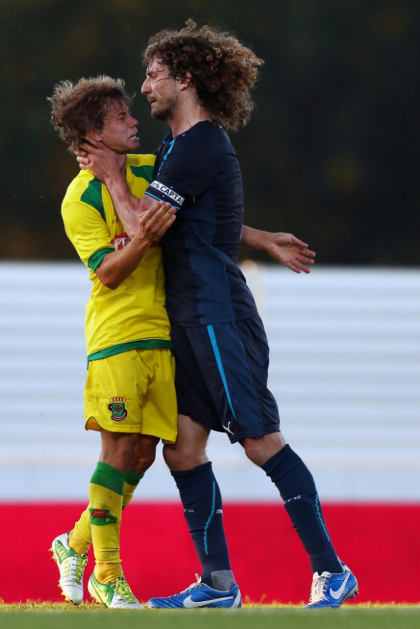 Аржентинският защитник на Нюкасъл Фабрисио Колочини бе изгонен от игра заедно с 22-годишния португалски нападател Руи Каетано от Пасош Ферейра в контролата между двата тима, завършила при резултат 1:1. Двамата футболисти получиха червени картони в 37-ата минута, а в Интернет се появиха снимки от инцидента. Като ги гледа човек, трудно би повярвал, че става дума за приятелска среща. На снимките ясно се вижда как капитанът на "свраките" е хванал за врата играча на португалския тим, който отбеляза гола за своя отбор (за "джордитата" точен бе Шола Амеоби).
