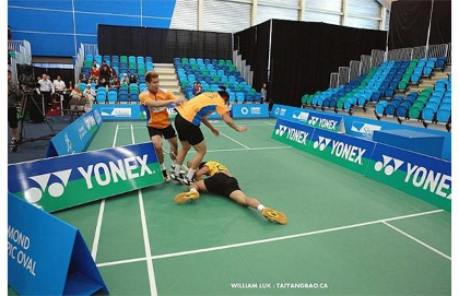 Тайландски бадминтонист се нахвърли с юмруци и ритници върху свой сънародник от противниковия отбор по време на Откритото първенство на Канада. Бодин Исара подгони бившия си партньор Манеепонг Джонгайт, свали го на земята и започна да го бие на съседния корт. Двамата бяха разтървани, а след това и дисквалифицирани, като Джонгайт не изглеждаше сериозно ранен.