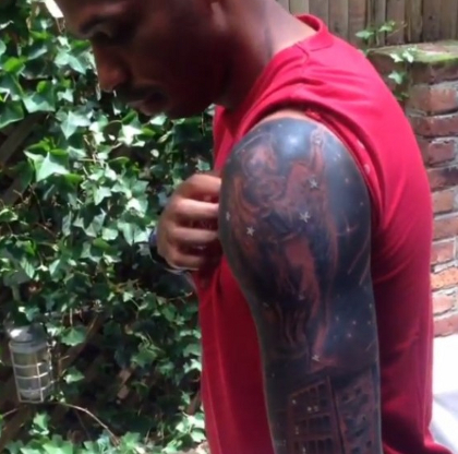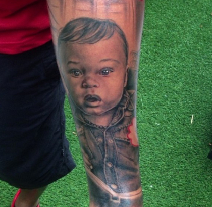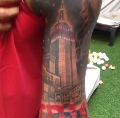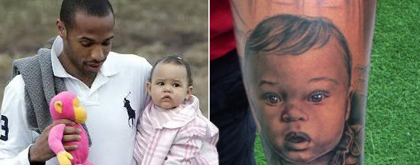 Нападателят на американския тим Ню Йорк Ред Булс и легенда на Арсенал Тиери Анри показа огромна татиуровка, простираща се на цялата му лява ръка. 35-годишният французин си е татуирал бебе, което би могло да бъде образ на 8-годишната му дъщеря Теа. Статуята на Свободата и Емпайър Стейс Билдинг са други два елемента от сложната татуировка, на която сякаш се вижда и Бруклинският мост.