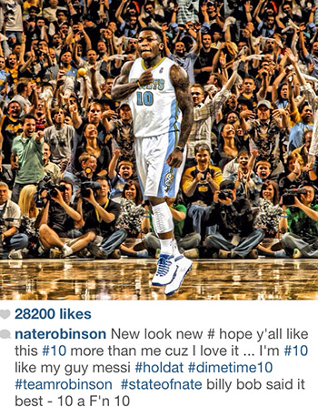Новото попълнение на Денвър Нъгетс Нейт Робинсън обяви, че ще носи №10 в състава на "Златните буци", а причините да избере този номер са две: първата е, че фланелката с №2 на гърба е извадена от употреба в чест на Алекс Инглиш, а втората е... Лионел Меси. Нисичкият (според баскетболните стандарти) гард не крие, че е фен на футбола, а аржентинският нападател на Барселона е любимият му играч.