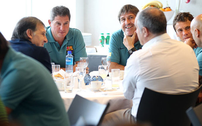 Наставникът се срещна с Лионел Меси и ко в ресторанта на хотела, в който са отседнали "синьо-червените". Тата седна на една маса и с новия си треньорски щаб, както и със спортния директор Андони Субисарета.