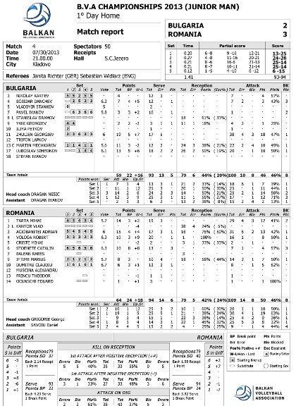 РУМЪНИЯ: Михай Тарца 14, Адриан Ачобаницей 15, Роберт Волога 10, Каталин Стоенете 10, Мариус Ифтиме 8, Клаудиу Димитру 6 - Влад Кантор-либеро (Михай Кристе, Рарес Балеан, Едуард Окунски 1, Теодор Фринчу)