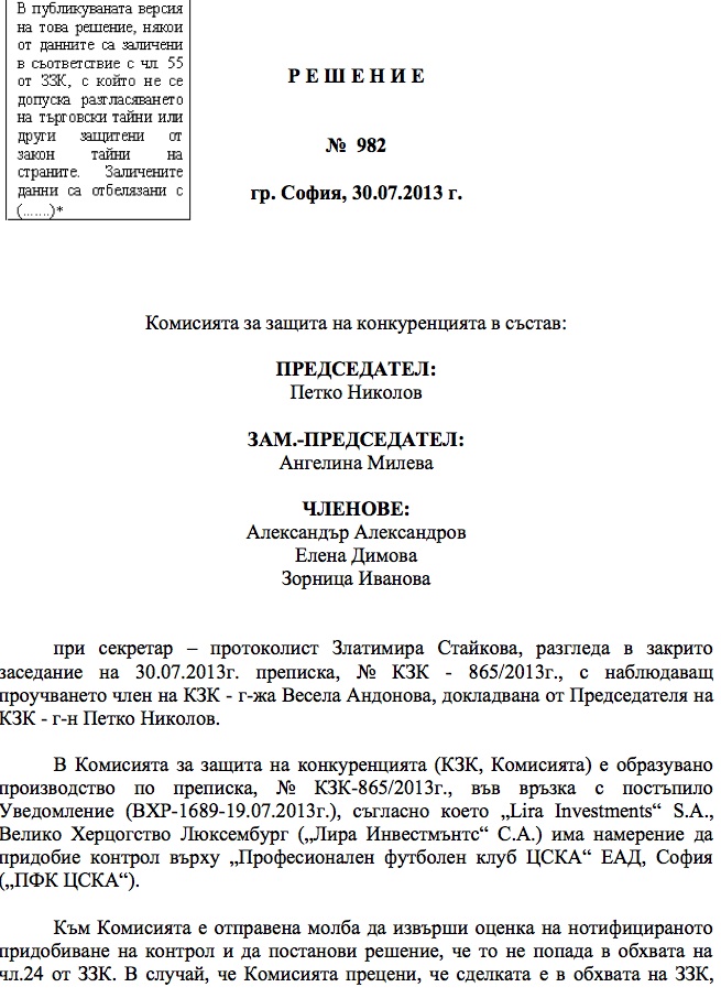 Сделката за ЦСКА бе одобрена официално (ето решението на КЗК)