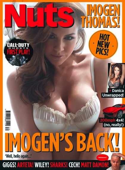 Бившата любовница на Райън Гигс - Имоген Томас, известно време бе далеч от фотообективите заради бременността си. Няколко месеца след като роди дъщеря си Ариана обаче, британската риалити звезда отново се появява на корицата на списание… и то по бельо. 30-годишната Имоген засне фотосесия за "Nuts", a снимките показват, че брюнетката не е изгубила усета си към позирането.