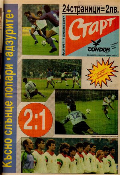 Тя е спечелена на 25 септември 1991 г. с резултат 2:1 в София в приятелски мач. Това е всъщност и първата победа на легендарната Пенева чета, кръстена на чичото на днешния наставник - Стратега от Мировяне Димитър Пенев, която три години по-късно става четвърта в света.