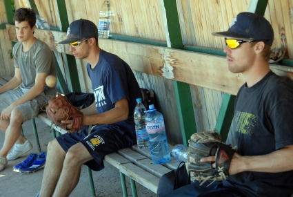 В момента у нас са само Норткот (на горната снимка вляво) и Дънсмор (на горната снимка вдясно), които продължават да носят екипа на Блус и през уикенда дори дебютираха във Финалната четворка на националния шампионат. На Уинтър (на долната снимка с фланелка на Блус в ръце) пък се наложи миналия месец да се прибере по спешност в Канада, за да бъде със своя заболял баща. В началото на плейофите в българското първенство Чад и Тайлър се съгласиха да дадат първото си интервю за българска медия пред Sportal.bg. В него двамата говориха откровено за впечатленията си от България, за бъдещето на бейзбола, за допинга в MLB, за протестите в София...