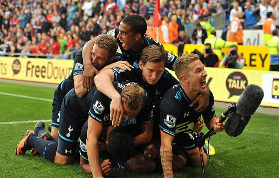 Бразилският национал Паулиньо донесе победата на Тотнъм при гостуването на Кардиф Сити на "Кардиф Сити Стейдиъм" с попадение в 93-ата минута на двубоя. Халфът завърши технично с голов удар с пета прекрасна комбинация на гостите, започнала от Люис Холтби и преминала през Ерик Ламела, за да прониже Дейвид Маршал и така да донесе четвъртата победа на "шпорите" от началото на сезона, която ги изкачи на второто място в класирането с равни точки с първия в него и голям съперник от Северен Лондон Арсенал. Преди попадението на Паулиньо стражът на домакините Маршал бе спасил редица положения пред своята врата, но бе принуден да капитулира в добавеното време на двубоя.