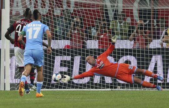 В 60-ата минута Балотели бе повален от Албиол и реферът посочи бялата точка. Зад топката застана играчът с номер 45, но Рейна изби неговия удар. Това е първа дузпа след 21 успешни опита, която нападателят пропуска в кариерата си.