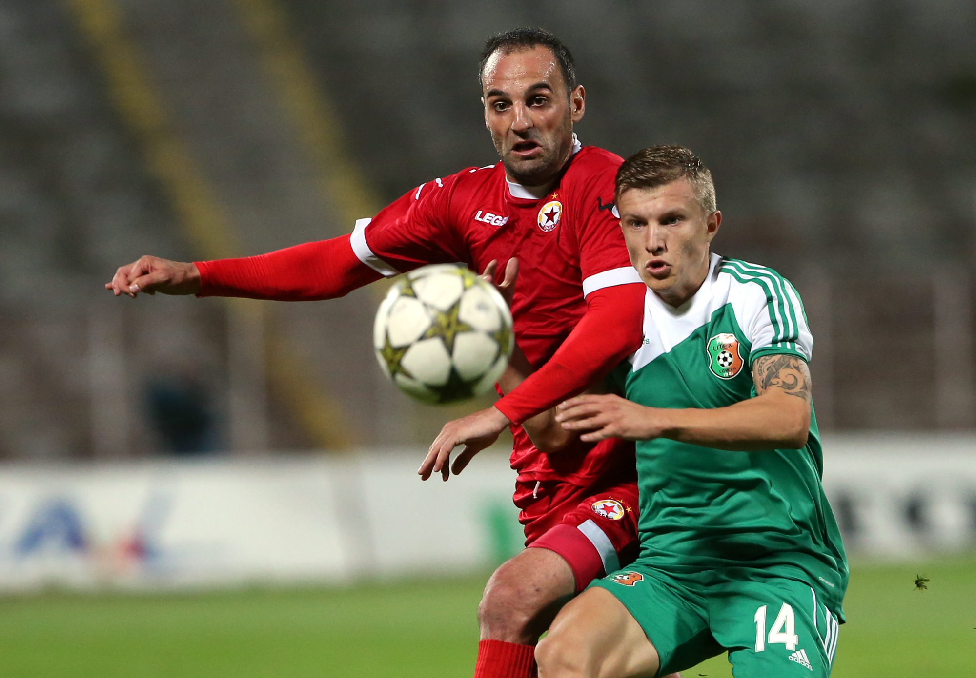 До края на полувремето играта се водеше предимно в половината на "червените", които бяха сериозно притиснати, но въпреки това не допуснаха ново серизно положение пред Томаш Черни. Чехът трябваше да се намесва единствено в 45-ата минута, когато опит за изчистване на Валентин Илиев го затрудни, но все пак успя да улови топката. Играта в тези минути доста се изостри, а Стойчо Младенов на няколко пъти реагира остро срещу отсъждания на рефера Ивайло Стоянов.