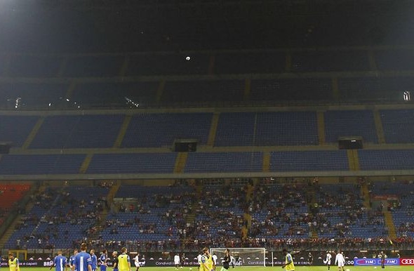 Ултрасите на "росонерите" бяха наказани заради расиските си обиди срещу Наполи и секторът Курва Суд бе празен, като феновете отказаха дори да влязат в другите сектори, а протестираха извън "Сан Сиро".