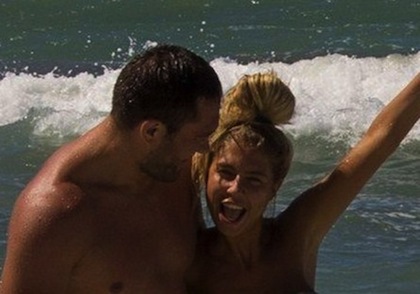 Фолкдивата наистина е много различна – на едната снимка тя позира заедно с гаджето си на фона на красив залез, а на другата са двамата в морето, където Андреа наистина няма капка грим.