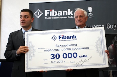 Календар 2013 г. на Fibank (Първа инвестиционна банка) е и благотворителен проект. Всички участвали в него спортисти дариха своите хонорари в общ размер на 30 000 лв. на Българската параолимпийска асоциация, чийто председател г-н Илия Лалов получи дарението на церемонията днес. По този начин Fibank подкрепи и българските параолимпийци.