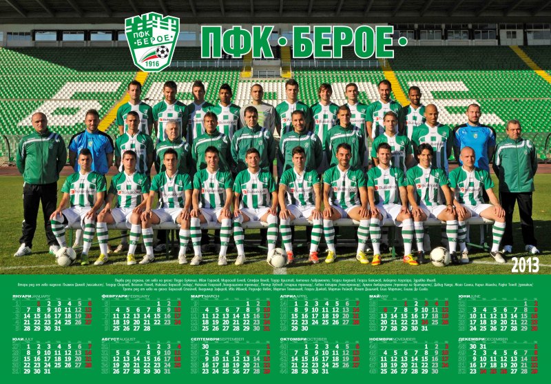 Ръководството на ПФК „Берое” пусна в продажба клубните календари за 2013 г. Те ще се продават в офиса на клуба на адрес: Стара Загора, ул. „Георги Кюмюрев” 10. Тази година на феновете ще могат да избират от три вида календари – „стандартен” /еднолистов/, „работен” /с три секции и датник/ и тип „пирамида” /за бюро/. Работните календари са в два варианта – със снимка на отбора и със снимка на стадион „Берое”. В продажба са и календарите за 2013 на ДЮШ, които са само в еднолистовия вариант.