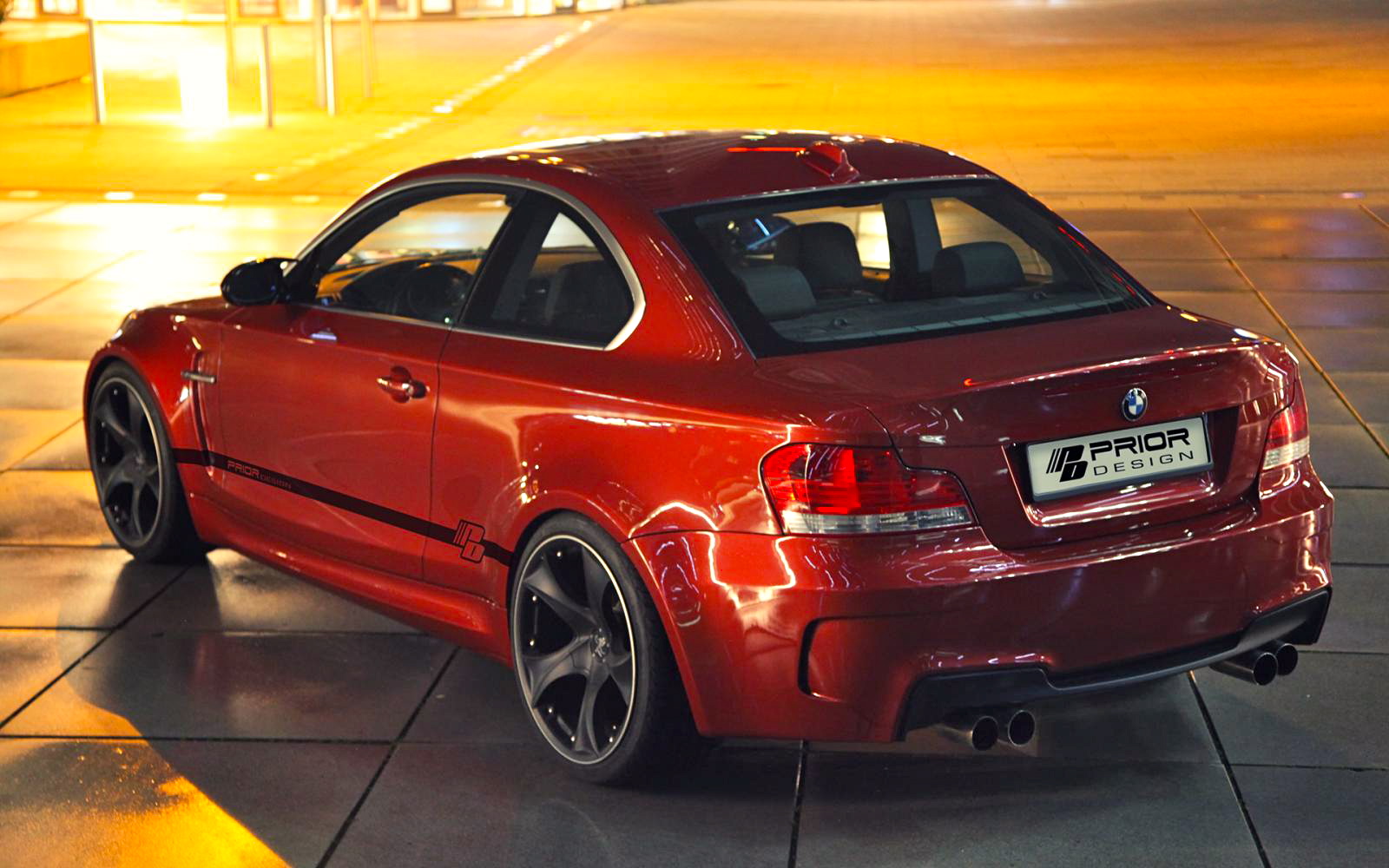За да превърнат стандартната "единичка" купе в 1M Coupe, от Prior Design предлагат нова предна броня, нови предни калници и широки вежди за задните, странични прагове, задна броня и голям лип спойлер за багажника. На снимките се вижда капак с гърбица в стил М3. Той се поръчва отделно, защото не е част от пакета на оригиналното 1M Coupe.