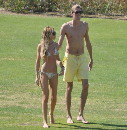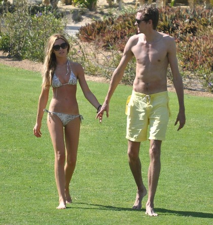 Футболистът на Стоук Сити Питър Крауч и красивата му съпруга Аби прекараха един романтичен ден на плажа. Моделката и нападателят се радват на топлото слънце в Дубай по време на кратката си ваканция. Високата 175 см футболна съпруга изглеждаше ниска в сравнение със своя любим, а и двамата показаха добре оформените си тела. Аби беше със светъл изрязан бански, докато Питър - с жълти бермуди до коляното. Двамата не спряха да показват близост и не се притесниха от фотографите, които постоянно дебнеха за пикантни кадри.