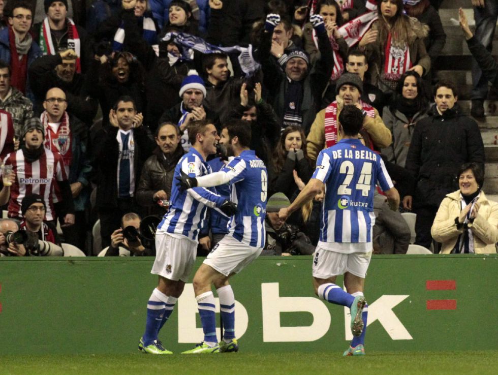 Реал Сосиедад удари Атлетик (Билбао) с 3:1 в баското дерби от 25-ия на испанската Примера дивисион, което се изигра на стадион "Сан Мамес" и се изкачи на 5-о място в класирането с 40 точки.
