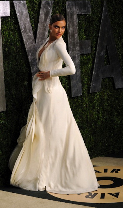 Не е никак случайно, че гаджето на Кристиано Роналдо - Ирина Шейк, е един от най-известните модели на планетата. Красивата рускиня събра всички погледи върху себе си на партито след раздаването на филмовите награди "Оскар" в неделя вечерта, когато се появи в чисто бяла рокля с изрязано деколте, което стигаше почти до пъпа й. С подобен тоалет тя се появи и на церемонията по тегленето на жребия за Шампионската лига миналото лято. Брюнетката изобщо не се притесняваше от предизвикателния си вид и с усмивка позира пред обективите. Снимките обаче със сигурност са посрещнати с още по-голяма усмивка сред мъжете… Какво деколте!