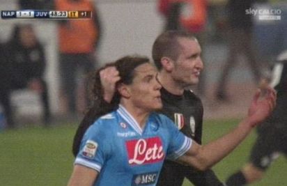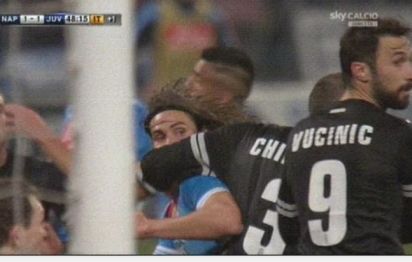 Кавани удари с лакът защитника на Юве Джорджо Киелини, но един от помощниците му описа ситуацията. Футболистите на "Старата госпожа" претендираха Кавани да бъде изгонен, но Орсато му вдигна само жълт картон.