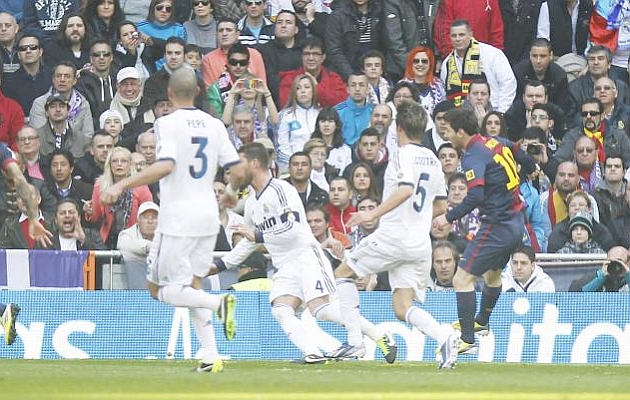 Отборът на Реал Мадрид пречупи с 2:1 Барселона в мач от 26-ия кръг на Примера, игран на "Сантиаго Бернабеу". Карим Бензема (6) и Серхио Рамос (82) зарадваха трибуните. За каталунците точен беше Лионел Меси (18). В 92-рата минута съдията Перес Ласа подмина положение в наказателното поле на "белите", при което по-скоро имаше дузпа. Срещата завърши със скандал, след като Виктор Валдес получи два жълти картона след края на мача. Така в рамките на пет дни "лос бланкос" на два пъти биха Барса, а днес скъсиха преднината на "лос кулес" до 13 точки. Важният мач за Реал Мадрид е във вторник срещу Манчестър Юнайтед на "Олд Трафорд".