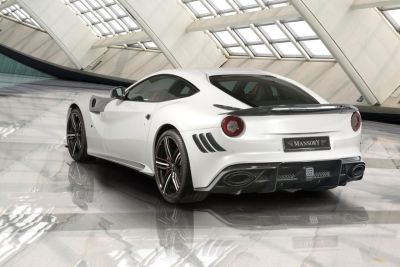 На автомобилното изложение F12 Berlinetta Stallone ще пристигне с повече сили и тотално променен дизайн. От Mansory са се постарали с нов бодикит, с който доближават предницата на спортното купе до болидите на Ferrari от Формула 1. Има остър нос и сплитър, наподобяващ предно крило. Предният капак е с два огромни отвора, подобряващи аеродинамиката и охлаждането.