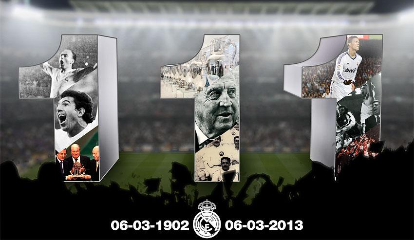 Най-славният клуб в историята на футбола Реал Мадрид днес навършва 111 години. Днешният рожден ден е сред на-щастливите за "лос бланкос", след като през миналата седмица на два пъти беше подчинен големия съперник Барселона, а снощи беше елиминиран Манчестър Юнайтед. На 6 март 1902 година се ражда Сосиедад Мадрид. Започва да печели по футболните терени на Испания под името ФК Мадрид. През 1920 година името на клуба се променя на Реал Мадрид, след като крал Aлфонсо XIII дава на "белите" званието "кралски".