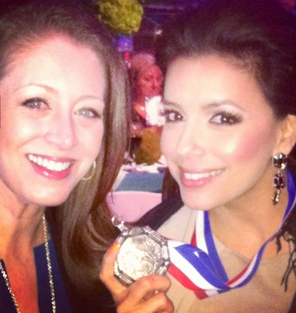 Ева Лонгория се завърна в родния си Тексас, където беше почетена за приноса си в изкуствата. Актрисата Ева Лонгория и Рикардо Чавира, който изигра екранната й половинка Карлос в сериала "Отчаяни съпруги", присъстваха на гала вечерта в Остин. На церемонията били наградени таланти, които се открояват в областта на изкуството и Ева е една от тях. Сред предишните носители на отличието са Томи Лий Джоунс и Уили Нелсън. На страницата си в социалната мрежа бившата съпруга на Тони Паркър сподели снимка с медала си и написа "Толкова съм горда да бъде отново в Тексас. Благодаря!"