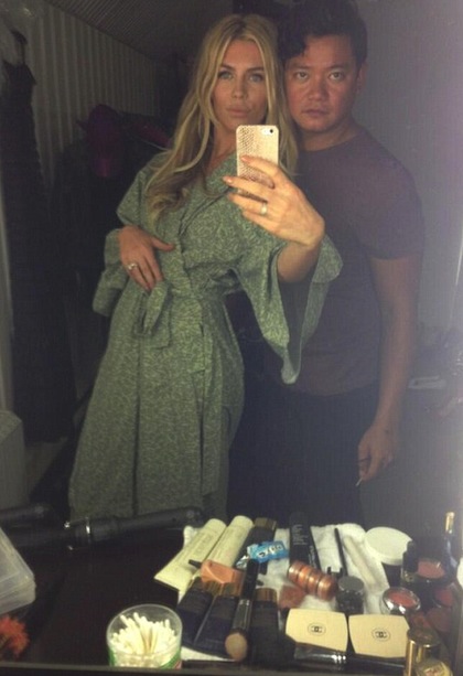 На друга снимка Аби се е снимала със своя личен гримьор - Джоси Бас, но този път е наметнала халат върху тялото си.