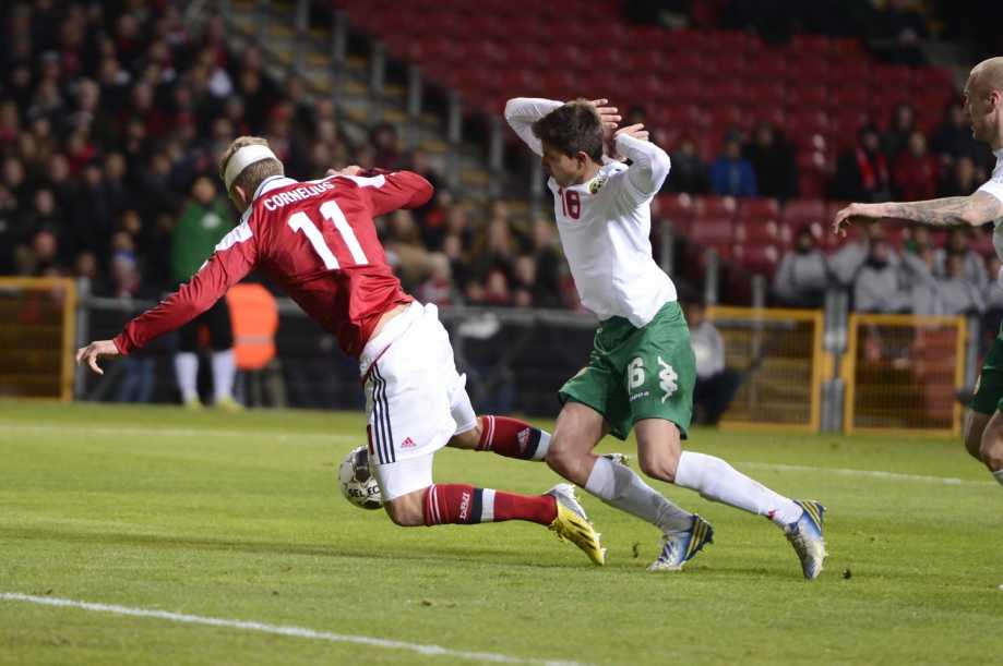Националният отбор на България направи много важна крачка към Мондиал 2014. "Лъвовете" на Любо Пенев стигнаха до изключително ценна точка при гостуването на Дания в мач от Група "B" на квалификациите за световното в Бразилия, завършвайки 1:1. Пред близо 23 000 фенове на "Паркен" в Копенхаген, от които 500 българи, Станислав Манолев откри за нашите в 51-ата минута, но Даниел Агер изравни в 63-ата от много спорна дузпа. "Трикольорите" могат да съжаляват, че след като поведоха не стигнаха до трите точки, тъй като през второто полувреме имаха много повече възможности за гол, въпреки че преди почивката Николай Михайлов показа класа и на два пъти спаси тима.