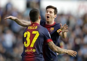В 41-вата минута Меси получи брилянтна възможност от пряк свободен удар. Шутът му от 19 метра обаче беше избит от Варас. В 43-ата Меси даде много хубаво подаване наляво към Тейо. Младият флангови нападател много технично прати топката в далечния ъгъл и с помощта на гредата изравни резултата - 1:1. Това беше пето попадение на Тейо в Ла Лига.