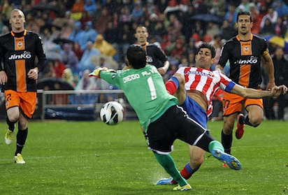 Звездата на Атлетико Мадрид Радамел Фалкао отбеляза 22-ия си гол от началото на сезона, но той не беше достатъчен на столичани за победа срещу Валенсия. Дербито на "Висенте Калдерон" завърши 1:1 и по този начин "дюшекчиите" пропуснаха добра възможност да се върнат на второто място, след като вчера Реал Мадрид не можа да надвие Сарагоса. Във второ поредно домакинство тимът на Диего Симеоне не успява да се добере до трите точки. Преди три седмици Атлетико отстъпи с 0:1 на Реал Сосиедад, а преди това имаше само победи на своя стадион.