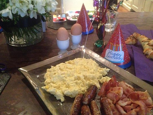 Синовете на Пош Спайс и Бекъм пък сготвиха типична английска закуска за баща си на рождения му ден. Бекс побърза да пусне фотос и на творението на Бруклин, Ромео и Круз, като в същото време им благодари за стореното. "Благодаря на невероятното ми семейство за това, че направи моя рожден ден толкова специален!", коментира Бекъм пред феновете си във "Фейсбук".