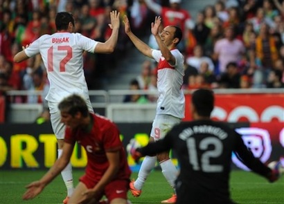 Португалия загуби с 1:3 от Турция последната си контрола преди Евро 2012. Кристиано Роналдо и съотборниците му бяха изненадани от бойката игра на гостите, които с бързи контри стигнаха до малко очакван успех в Лисабон. Турците се представиха много по-силно, отколкото в мача срещу България във вторник, спечелен от тима на Абдула Авджъ с 2:0. В интерес на истината гостите предимно се защитаваха, но не пропуснаха да се възползват от пробойните в защитата на португалците. За крайния резултат помогна и пропускът на Роналдо от дузпа в средата на второто полувреме. Неговият съотборник в Реал Мадрид Пепе пък си отбеляза автогол в предпоследната минута.