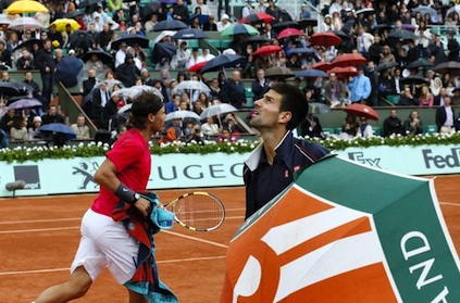 Капризното време във френската столица принуди организаторите да прекъснат финала във вчерашния ден и то два пъти. Първо това се случи във втория сет, след което и в четвъртия. Това обаче не попречи Рафа и Ноле да покажат класа на клея на централния корт "Филип Шатрие".