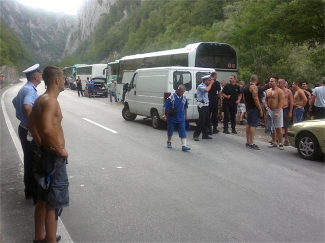 Агитката с левскари - 5 автобуса, микробуси и лични автомобили, беше спряна по план за щателна проверка още на границата между Сърбия и Босна. На пункт Мокра гора всяко возило и всеки човек беше обискиран от над 30 охранители с полицейски кучета. Един ултрас дори не бе пуснат да влезе на територията на Босна заради забрана да посещава мачове, която прерасна в отказ за допускане в друга държава.